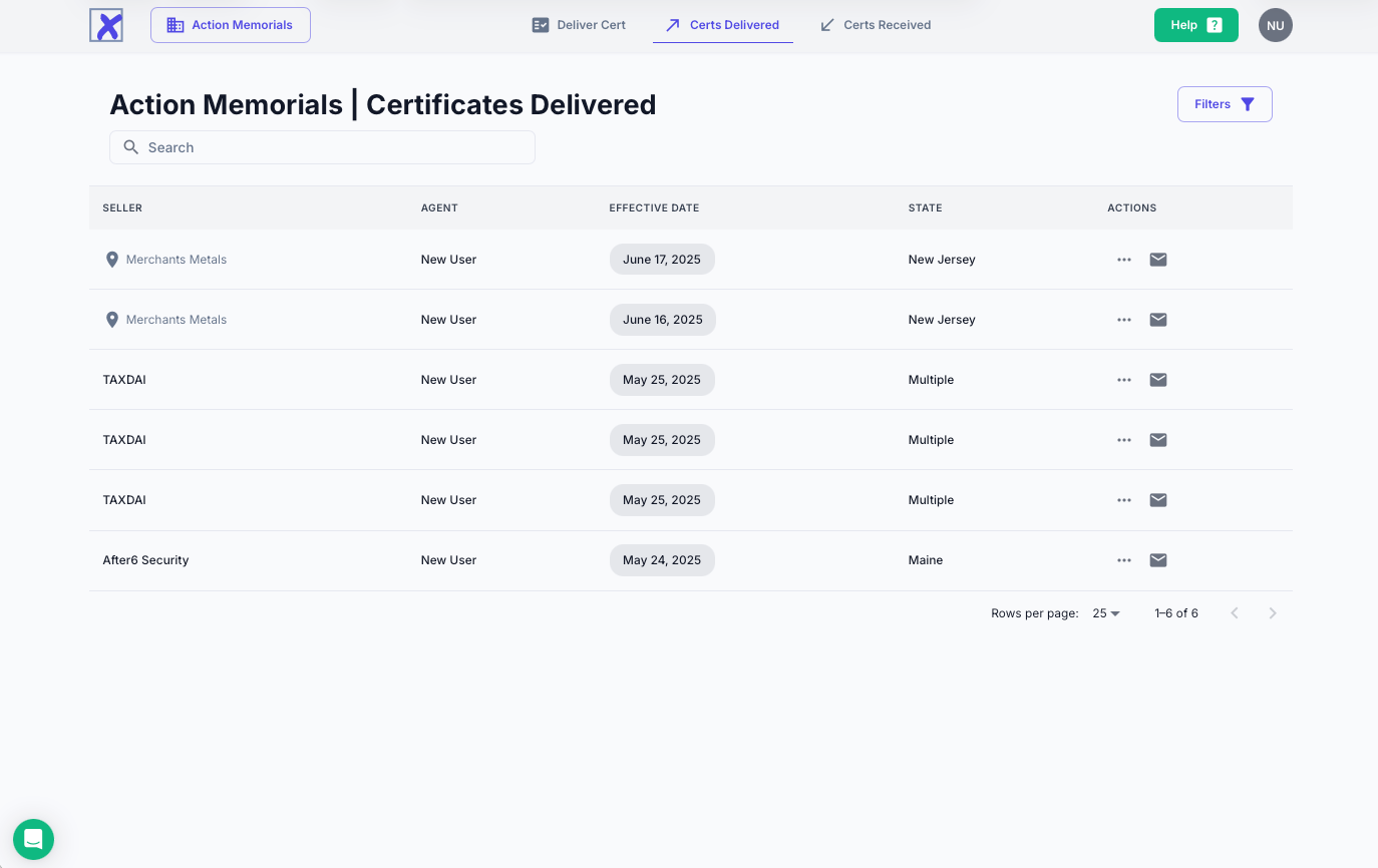 all certs delivered within the system can be viewed by pressing "Certs Delivered" on the top navigation.